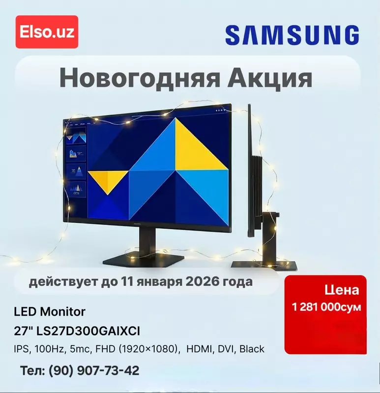 Samsung 24 LS24D300 monitorlariga Yangi yil aksiyasiELSO.uzдан махсус Янги йил таклифи! 🎁 Samsung 24" LS24D300GAIXCI мониторLED,...